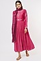 Featuring a magenta anarkali in chanderi and wrinkled cotton base with embroidery. It is paired with a matching georgette dupatta having a tie-dye print.
