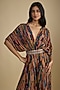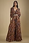 Featuring a multi-colored jumpsuit in crepe base with gathered sleeves and digital print. It is paired with a belt having sequins and beads embroidery. Accentuate it with statement jewellery and wedges, perfect for sangeet ceremony, festive brunches or contemporary celebrations.