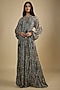 Featuring a multi-colored maxi dress in lurex base with bell sleeves, tie-up detail and digital print. It is paired with a butter crepe slip. Accentuate it with statement jewellery and wedges, perfect for sangeet ceremony, festive brunches or contemporary celebrations.