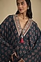 Featuring a navy blue kaftan dress in crepe base with sequins and beads embroidery, including digital print. Accentuate it with statement jewellery and wedges, perfect for sangeet ceremony, festive brunches or contemporary celebrations.