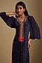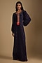 Featuring a navy blue maxi dress in crepe base with print, sequins and tassels embroidery. Accentuate it with statement earrings and heels for a perfect festive ready-look.