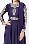 Featuring a navy blue anarkali in chanderi wrinkle cotton base with embroidery. It is paired with matching dupion silk pants and a georgette dupatta.