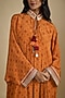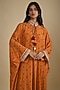 Featuring an orange kaftan dress in crepe base with mirror, gota work and digital print. Accentuate it with statement jewellery and wedges, perfect for sangeet ceremony, festive brunches or contemporary celebrations.
