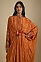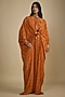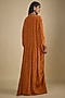 Featuring an orange kaftan dress in crepe base with zardosi, sequins, tassels-up detail and digital print. Accentuate it with statement jewellery and wedges, perfect for sangeet ceremony, festive brunches or contemporary celebrations.