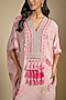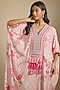 Featuring a pastel pink kaftan dress in crepe base with tassel detail, print, gota work, mirror and pearl embroidery. Accentuate it with statement earrings and heels for a festive occasion.