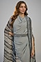 Featuring a black draped dress in crepe base with print and sequins embroidery. It is paired with a georgette cape having print and sequins embroidery. Accentuate it with stud earrings, heels, and a clutch for an evening look.