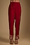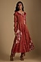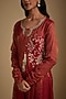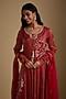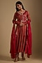 Featuring a red anarkali in chanderi tissue base with cutwork and zardosi embroidery. It is paired with dupion silk pants and a georgette dupatta. Accentuate it with statement earrings and heels for a perfect festive ready-look.