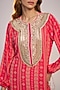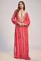 Featuring a fuchsia pink kaftan dress in crepe base with digital print, tassels, gold fringe detail and sequins embroidery. Accentuate it with statement earrings and heels for a festive occasion.