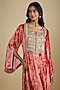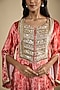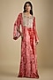 Featuring a red kaftan crepe in velvet base with sequins, gota and pearl embroidery, including digital print. Accentuate it with statement jewellery and wedges, perfect for sangeet ceremony, festive brunches or contemporary celebrations.