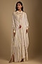 Featuring a white tie-dye kaftan in cotton crush base with abla, tassels and dori embroidery. It is paired with a shantoon slip. Accentuate it with statement earrings and heels for a perfect festive ready-look.