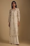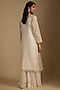 Featuring a white kurta in organza base with sequins and pipework embroidery. It is paired with crepe sharara pants, a shantoon slip and a georgette dupatta. Accentuate it with statement earrings and heels for a perfect festive ready-look.