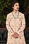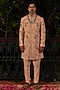 Beige Matka Silk Zardosi Embroidered Sherwani Set