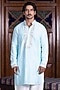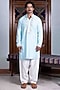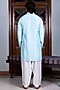 Featuring a ferozi blue kurta in tussar silk base with silver kasab and mirror work. It is paired with white pyjama pants. Style it with mojaris for a festive occasion, wedding or engagement ceremony, exuding charm and elegance.