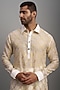 Featuring an ivory kurta in chanderi base with jaal embroidery. It is paired with matching pants.