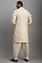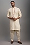 Featuring an ivory kurta in cotton lurex base with hand embroidery. It is paired with matching pyjama pants.