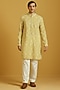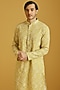 Featuring a pastel yellow kurta in cotton base with lucknowi embroidery. It is paired with glaze cotton pants. Perfect wear for festive occasions.