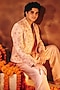 Featuring a salmon pink jacket in tussar silk base with kasab, resham and mirror dori work. It is paired with a chanderi shirt and tussar silk flared pants. Style it with mojaris for a wedding, sangeet or engagement ceremony, exuding charm and elegance.