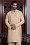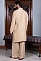 Featuring a sand beige kurta in tussar silk base with gold kasab and mirror work. It is paired with flared pants. Style it with mojaris for a festive occasion, wedding or engagement ceremony, exuding charm and elegance.