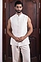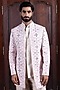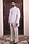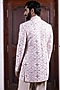 Featuring a soft pink long jacket in tussar silk base with jaal, resham, kasab and mirror work. It is paired with an ivory textured tissue bundi and flared pants. Style it with loafers for a wedding, sangeet or engagement ceremony, exuding charm and elegance.