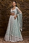 Featuring an aqua lehenga in net base with sequins, pearls, mirror and glass bead hand embroidery. It is paired with a blouse and a dupatta. Accentuate it with zircon jewellery and heels for wedding, sangeet or engagement ceremony.