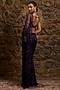 Aubergine Net Hand Embroidered Draped Saree Set