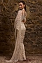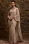 Champagne Gold Net Hand Embroidered Draped Saree Set