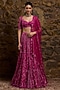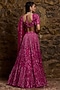 Featuring a fuchsia pink lehenga in net base with sequins, crystal and glass bead hand embroidery. It is paired with a blouse and a cape. Accentuate it with zircon jewellery and heels for wedding, sangeet or cocktail ceremony.