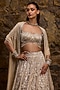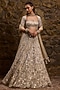 Featuring a gold and silver ombre lehenga in net base with sequins, crystal and glass bead hand embroidery. It is paired with a blouse and a dupatta. Accentuate it with zircon jewellery and heels for wedding, sangeet or engagement ceremony.
