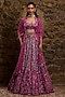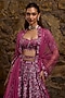 Featuring a plum lehenga in net base with sequins, crystal and glass bead hand embroidery. It is paired with a blouse and a dupatta. Accentuate it with zircon jewellery and heels for wedding, sangeet or engagement ceremony.