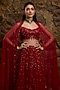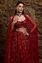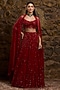 Featuring a red lehenga in net and satin organza base with sequins and glass bead hand embroidery. It is paired with a blouse and a dupatta. Accentuate it with zircon jewellery and heels for wedding, sangeet or bridal look.