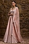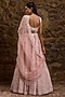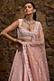 Featuring a rose pink lehenga in raw silk and organza base with sequins, crystals and glass bead hand embroidery. It is paired with a blouse and a dupatta. Accentuate it with zircon jewellery and heels for wedding, sangeet or engagement ceremony.