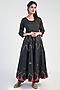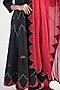 Featuring a black anarkali in silk cotton chanderi base with zardosi and sequins hand embroidered motifs. It is paired with matching cotton satin scalloped palazzo pants and a semi chiffon red dupatta having applique work.