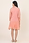 Featuring a coral knee-length dress in cotton mulmul base with a lace collar, balloon sleeves, hand block print, and monochrome colored panels. It is paired with a matching cotton slip.