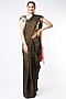 Featuring a black saree in chanderi tissue base with a bandhani lining border and mirror work. It is paired with a contrasting kota doria unstitched blouse piece.