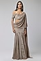 Dull Nude Self Pleated Stretch Draped Gown Saree Set