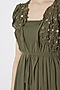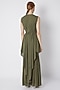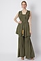 Featuring an olive green jacket in wrinkled viscose rayon base with appliques embroidery. It is paired with a matching top and sharara pants.