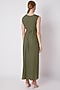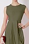 Featuring an olive green dress in wrinkled viscose rayon base with a closed neckline.