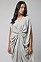 Featuring a silver grey dress in vegan silk base with a v-neckline, centre knot and tie-up belt detail. Accentuate it with statement earrings and heels for evening wear or cocktail soirees.