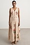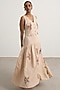 Featuring a beige maxi dress in linen base with a V-neckline, structured sleeves, side pockets and floral embroidery. Opt for minimal accessories and nude or white footwear to keep the look effortlessly chic. You can add a pop of color with statement earrings or a bright bag.
