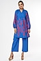 Featuring a cobalt blue tunic in cotton poplin base with floral abstract motifs embroidery. It is paired with matching pants.