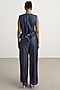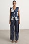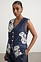 Featuring a dark blue vest in denim base with a V-neckline, cinched waist and floral embroidery. It is paired with wide-leg pants. Opt for minimal accessories and nude or white footwear to keep the look effortlessly chic. You can add a pop of color with statement earrings or a bright bag.