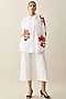 Featuring a white top in cotton poplin base with floral embellishments and mother of pearl button placket. It is paired with pants having an elasticated waist. Accentuate it with statement earrings and heels for a casual or office look.