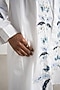 Featuring a white button-down shirt in cotton base with tropical patchwork. It is paired with straight pants. Opt for minimal accessories and nude or white footwear to keep the look effortlessly chic. You can add a pop of color with statement earrings or a bright bag.
