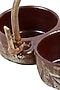 Hand-crafted studio pottery beige chutney server with cane handle from pondicherry.