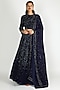 Featuring a navy blue lehenga in chiffon base with sequins embroidery. It is paired with a matching blouse and a dupatta.