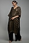 Featuring a black kurta in chiffon base with sequins embroidery. It is paired with an inner and pants. Accentuate it with statement jewellery and heels for sangeet ceremony.