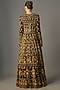 Featuring a black anarkali in chiffon base, adorned with thread embroidery. It is paired with a lehenga, inner skirt, and an embellished dupatta. Style it with jhumkas and wedges for a festive or wedding ceremony.