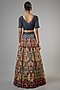 Featuring a blue lehenga in chiffon base with thread embroidery. It is paired with a blouse and a dupatta. Style it with statement jewellery, potli and heels for a sangeet or engagement ceremony.