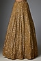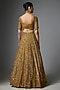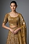 Featuring a gold lehenga in silk chiffon base. It is paired with a blouse and a dupatta. Accentuate it with choker necklace set, heels a potli bag for a wedding, engagement or sangeet ceremony.