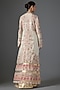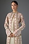 Featuring an ivory jacket in chiffon base with thread embroidery. It is paired with an inner top and a skirt. Accentuate it with statement earrings and heels for festive occasions, sangeet or pre-wedding ceremonies.